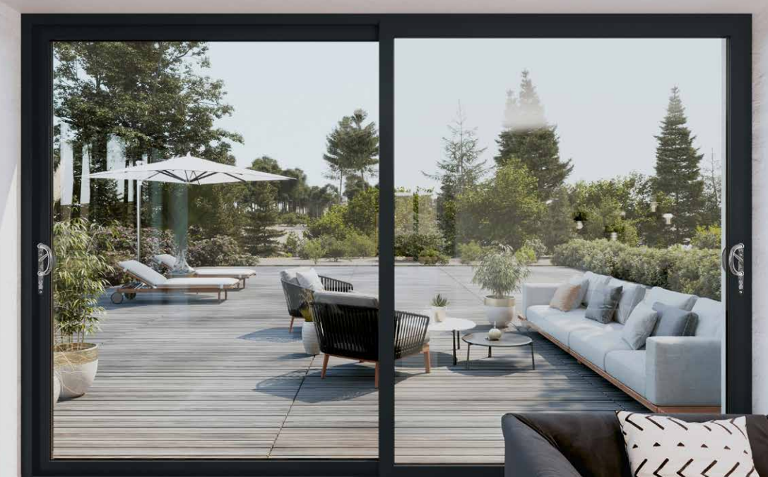 Sliding doors save space, allow larger glass panels, and create a seamless link between indoor and outdoor areas.